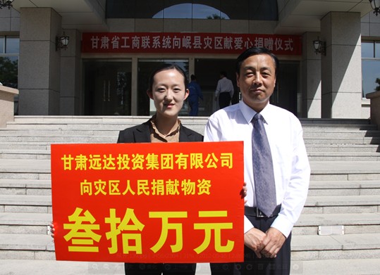 [2012-5-23]扶危濟(jì)困 奉獻(xiàn)社會(huì) [2012-5-23]心系災(zāi)區(qū) 大愛遠(yuǎn)行 [2011-4-10]甘肅遠(yuǎn)達(dá)集團(tuán)向青海玉樹地震災(zāi)區(qū)捐助價(jià)值30萬...